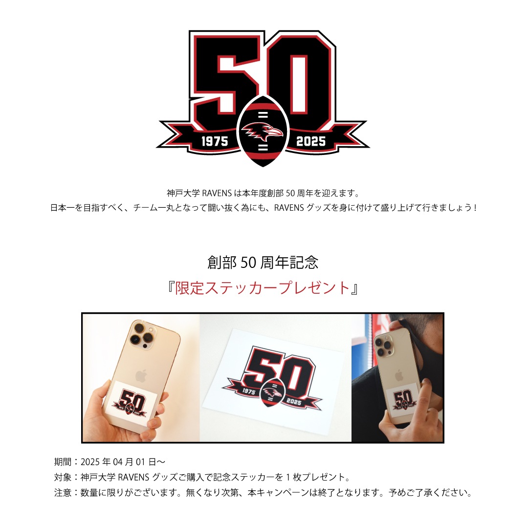 神戸大学レイバンズ【創部50周年記念ステッカープレゼント】